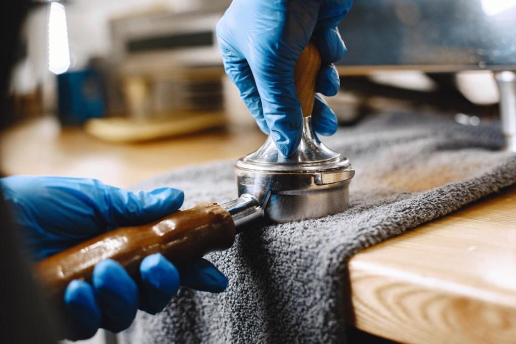 Zügig mit einem sauberen, saugfähigen Tuch von außen nach innen tupfen. Kein heißes Wasser bei Eiweißanteilen, lieber lauwarm. Mildes Spülmittel im Testbereich prüfen. Wiederholen, statt zu rubbeln. Welche Trickkombination hat Ihnen bei Rotwein geholfen? Teilen Sie Ihren Tipp!